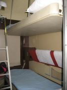 「狭いながら(からこそ?)も楽しい我が家〜♪」夜行列車の客室。
