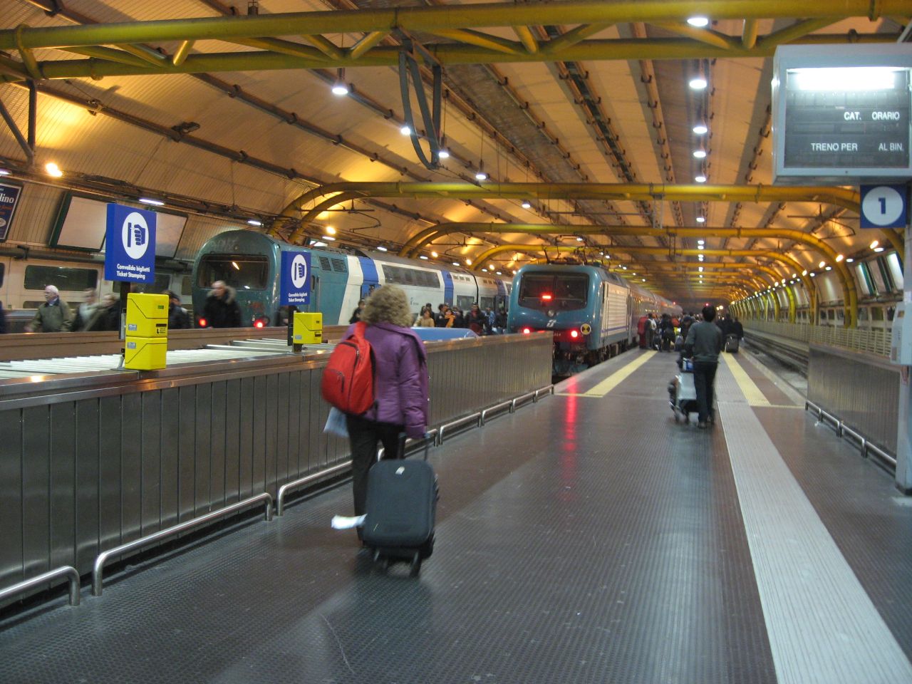 ホームで待っていると列車の到着予定の番線が急遽変更で大移動。アナウンスは当然イタリア語なのでまったくワカリマセンので、周囲の気配と標示板が頼りです。