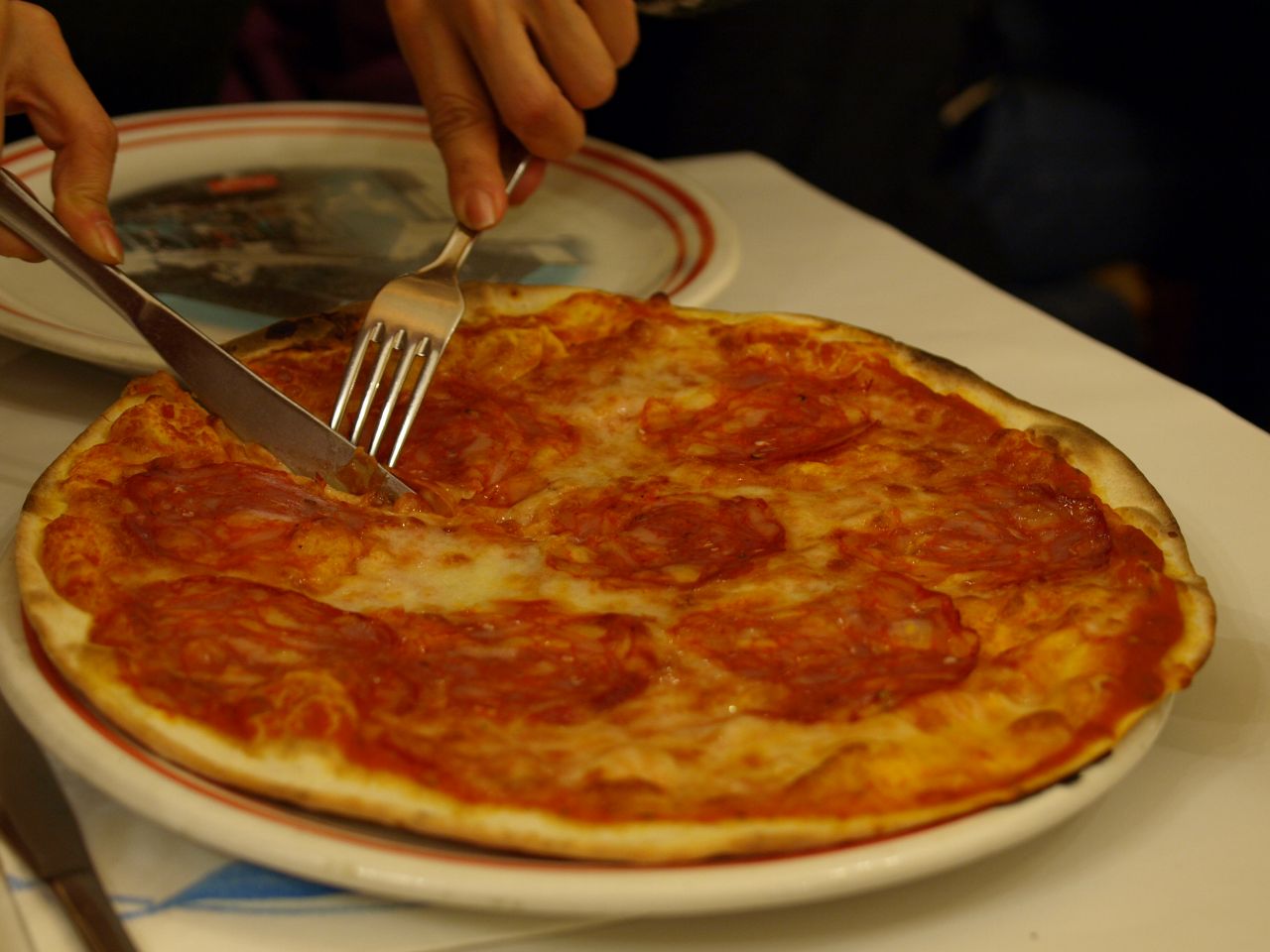 イタリア上陸を祝って(?)まずはテルミニ駅近くのピッツェリアで、ローマ風ピザを食べる。