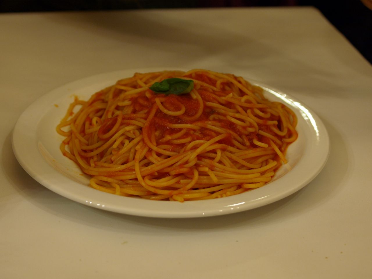 続いて基本のパスタ、スパゲッティ・ポモドーロ(トマト)をオーダー。まずは、最初は基本の味を食べたかったのだそうだ・・・非常にただシンプル。