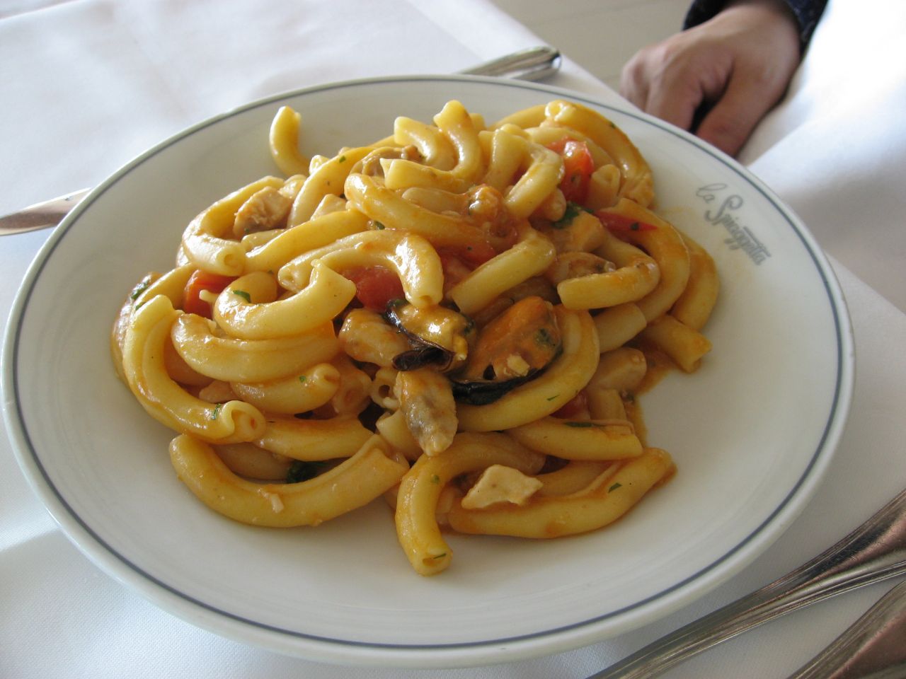 海沿いのレストランは、新年のせいか、イタリアらしい大家族で利用している人がいっぱいです。