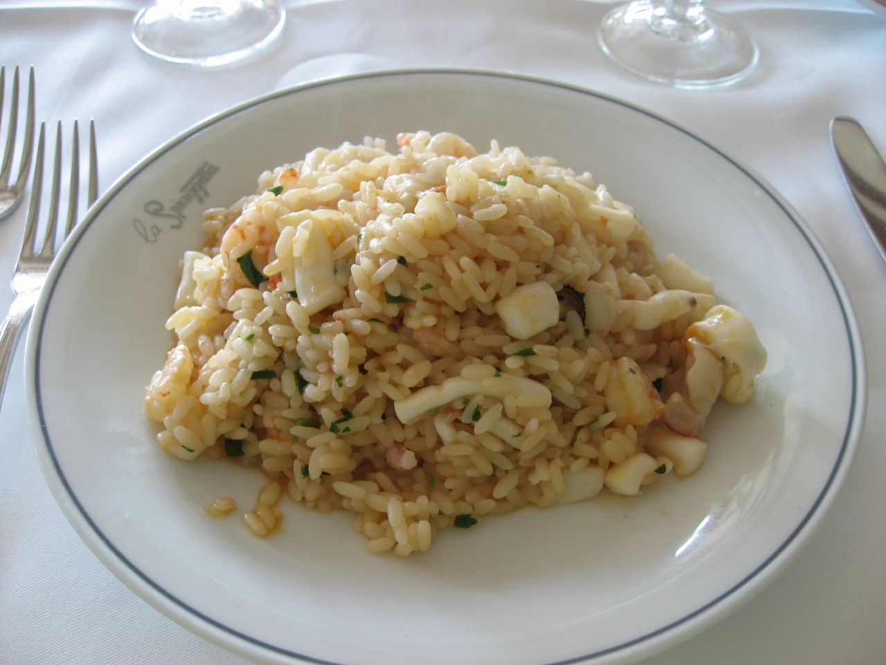 海沿いだし、シーフードの手打ちパスタと、リゾット。