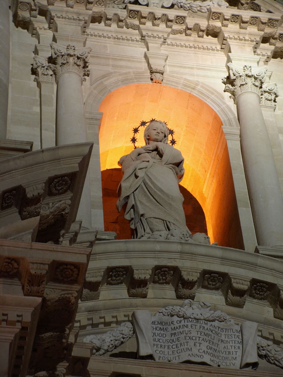 duomoの正面を飾る、光の中に浮かび上がる聖母?聖女サンタルチア?。