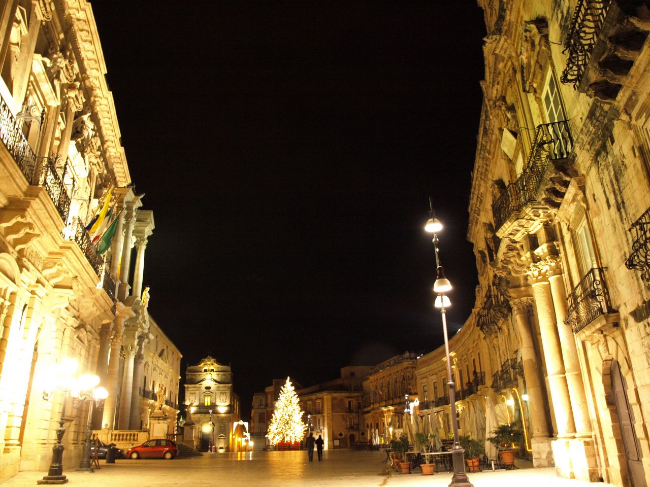 映画「マレーナ」の舞台となった、昼も夜もとても美しい広場です。