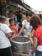 店はいっぱいです。みんなタイ人だから、私たち観光客は珍しいみたい。