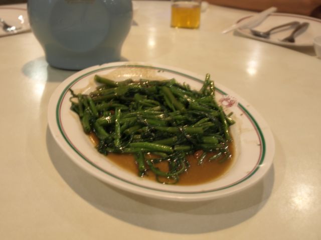 空心菜のにんにく炒め。まずはホッとする一品。
