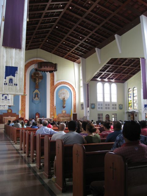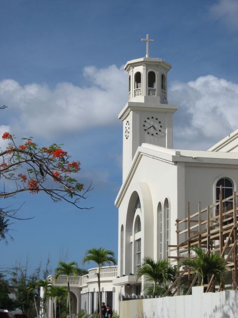 白亜のハガニア大聖堂。ステンドグラスの美しいカトリック教会です。