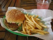 ランチは近くで買ってきた、ハンバーガー。デカっ。