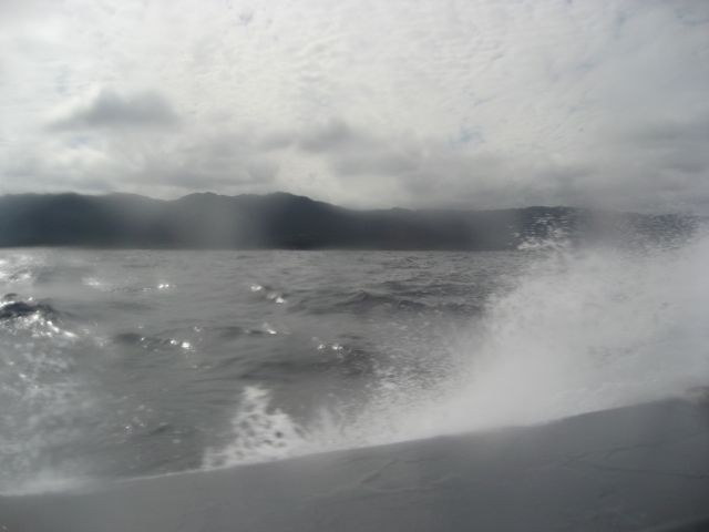 3mくらいの波の中をぶっとばしていきます。高速船で速いので、