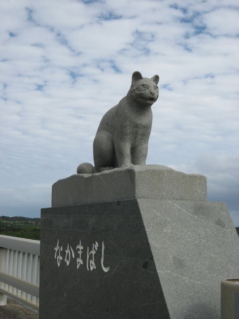シンボルのイリオモテヤマネコの像。普通の猫です。