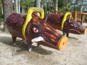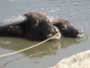 池の水牛も温泉気分。水牛は、字のごとく普段は水に浸かっているのが一番幸せなのだそう。
