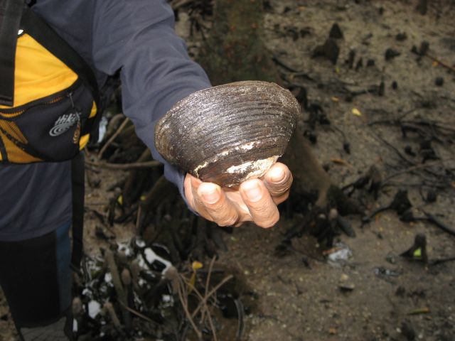 途中インストラクターが見せてくれた西表島の巨大しじみ。しじみ一匹で一日約2トンもの水を浄化させる能力があるそうです。