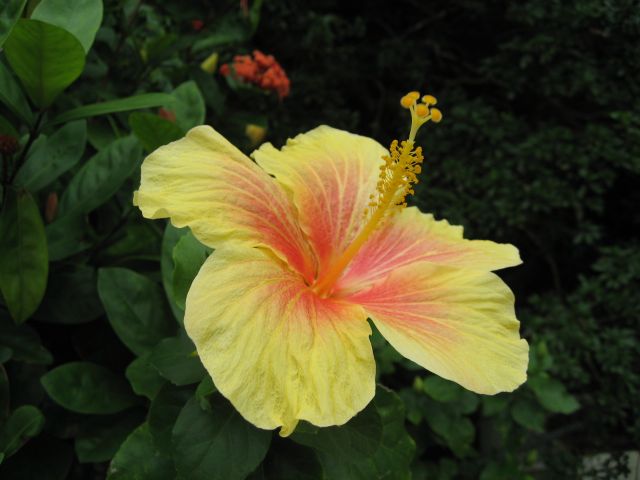 ハイビスカスも何色も咲いています。みごとな黄色。