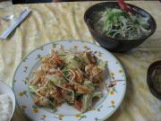 名物の野菜ソーキそばと、フーチャンプルー(お麩の炒め物)