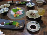 夕食は母屋で頂きます。奥さんが作る家庭料理。地元の食材をふんだんに使っています。