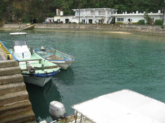 白浜から約10分、船浮の港です。イリオモテヤマネコを最初に捕獲した地でもあります。