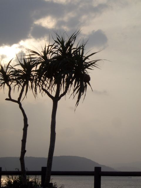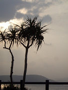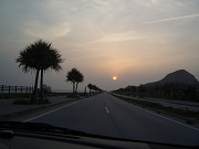 本部半島を海に向かって走ります。沈む夕陽がすごくキレイ。