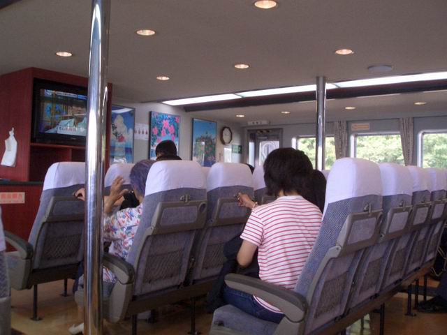 船内はこんな感じ。テレビもあってゆったりの55分の船の旅です。