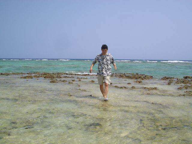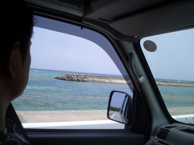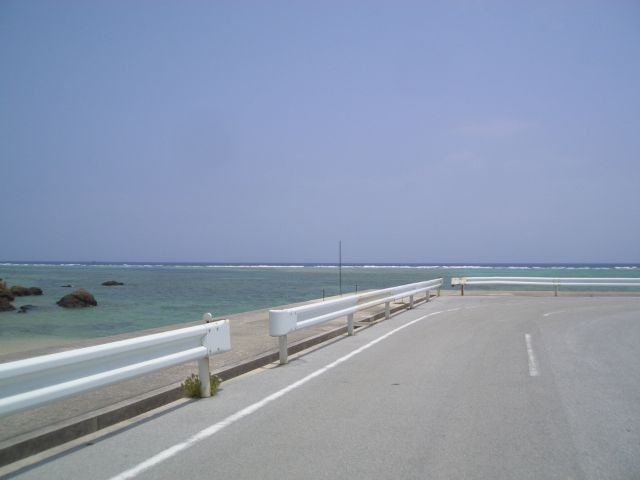 向こうは何層にも碧い色が重なる海です。ひゃー・・
