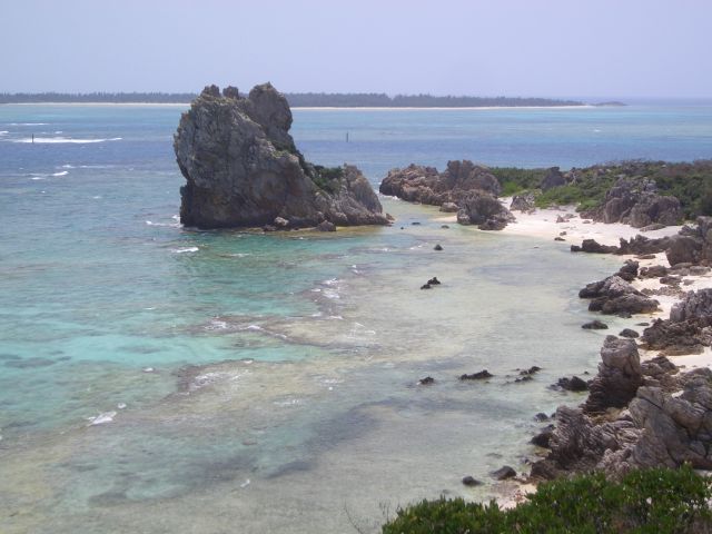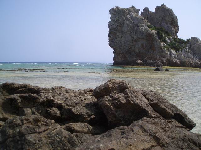 伊是名の景勝地、海にある海ギタラ(尖った岩山)。、