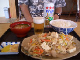 宝の島の夕飯。右下のは、アヒル汁。アヒルもよく食べるそう