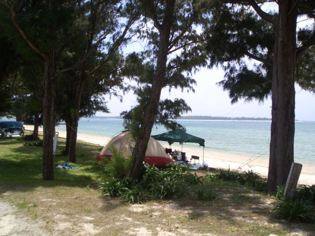宿の目の前の伊是名ビーチは、キャンプ整備がされていて
