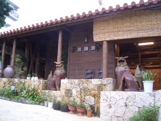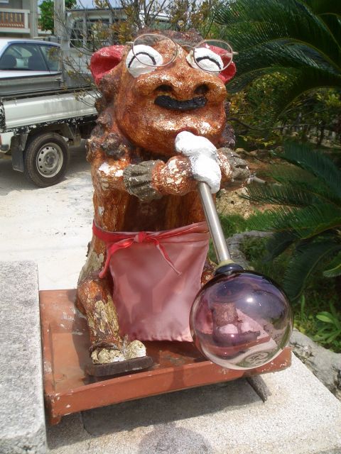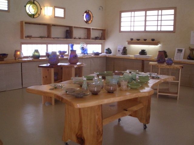 やちむん(やきもの)の里入り口近くにある(なぜか)琉球ガラス 稲嶺盛吉さんの工房。