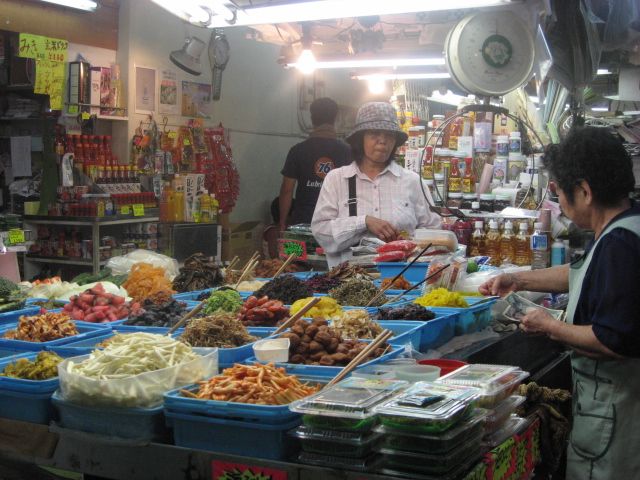 牧志市場の中は、こんな漬物の店などもあって、つまんで歩く。