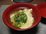 かつおダシとアーサー(あおさ)のかかった、ホッカホカのゆし豆腐。