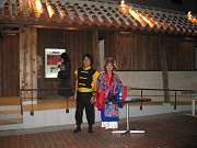 近くに沖縄バンド、りんけんバンドのライブハウスがあります。ちょうど照屋林賢さんと、ヴォーカルの上原知子さんがライブを終えて出てきたところでした。