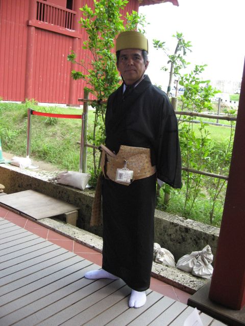首里城案内のおじさんの着物も帯もすごいステキです。