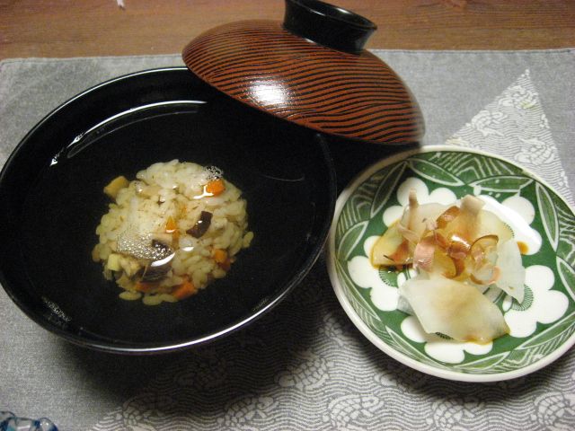 そこに熱いだし汁をかけていただきます。さらさらっと♪