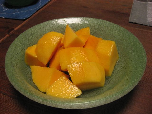 時化でよい刺身がなかったからその代わりにと出してくださった、もう、ばっちり食べごろのアップルマンゴー。