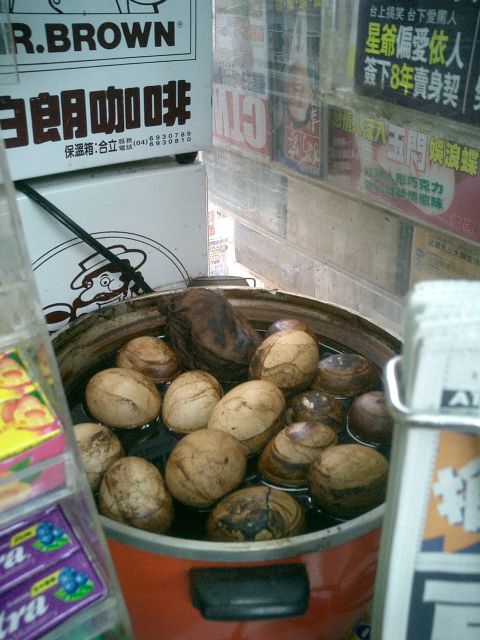 庶民の味「茶葉蛋(チャァーエータン)ウーロン茶で茹でた卵です。駅のキオスクでゲット。コレコレ、噂に聞いて探していた一品です。見た目は怖いけれどおとなしい味でこれがビールのつまみに激しく合います。