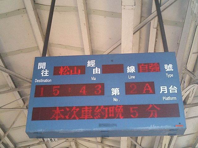 約5分遅れで特急・自強号が到着。漢字だからなんとなく理解できる。台北まで約2時間、韓国製の列車です。