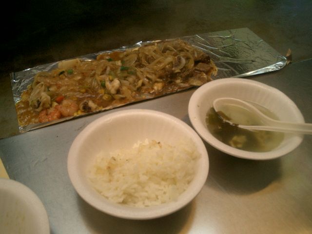 シメのご飯に、鉄板焼きの屋台を選んでみました。おいしくて、リーズナブルで、このシステム、日本でやったら流行ると思うんだけどなー。