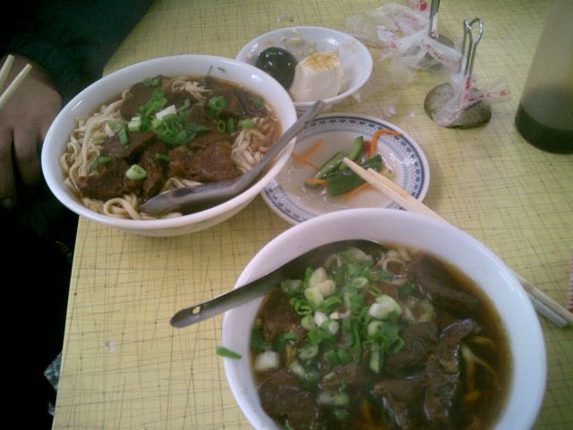 公園みたいな場所に牛肉麺屋が建ち並んでいます。どこがよいのかわからないので、とりあえずお客さんの多い店を選びました。