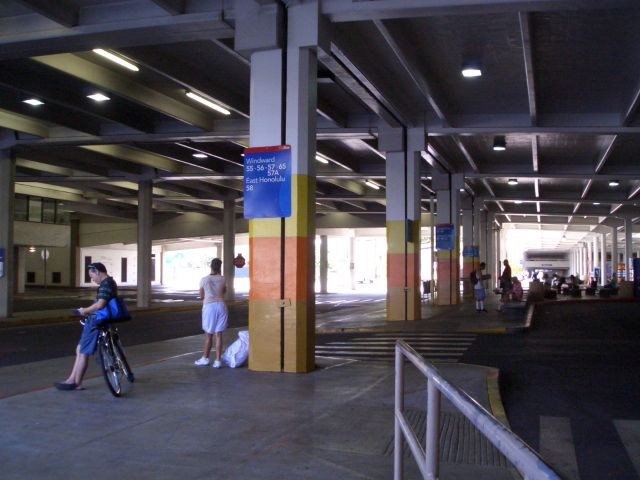 さぁて、まずはワイキキからバスでホノルル郊外へのバスが出るASCの北側ターミナルまで行き、56番バスに乗り換えます。