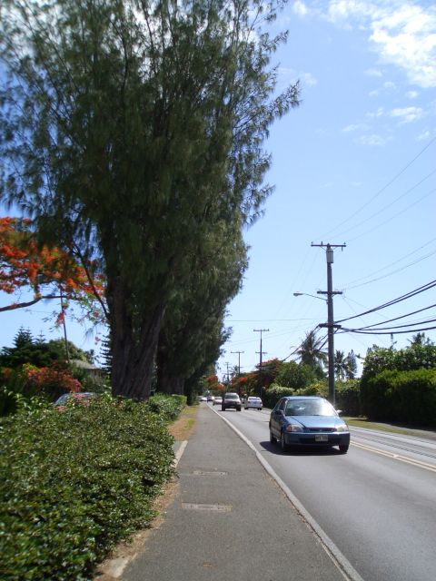 カイルアの町からビーチまで、乗り換えるバスはあるのですが1時間に1本程度。20分ほどなので歩くことにします。
