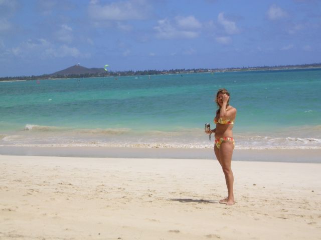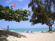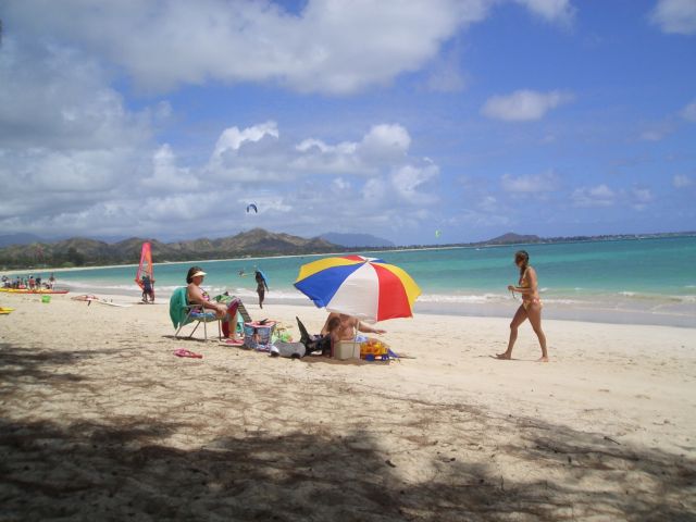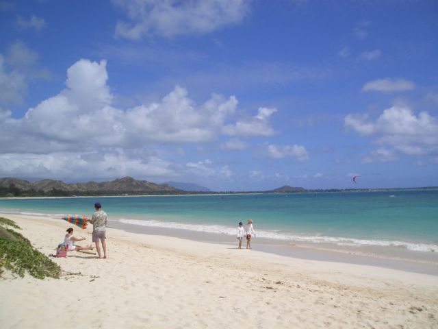 カイルアはウィンドサーフィンのメッカ。パラセイリングを楽しむ人もいっぱいいました。写真撮ってたら「是非トライしてみなさい!」とおじさんたちに説得されましたが、ジェットコースターとかダメな私は、丁寧にお断りしました。
