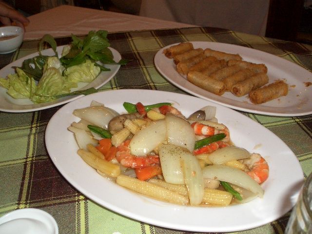 頼んだ料理はおなじみのチャーヨー、シーフード炒めは中華風でおいしかった。