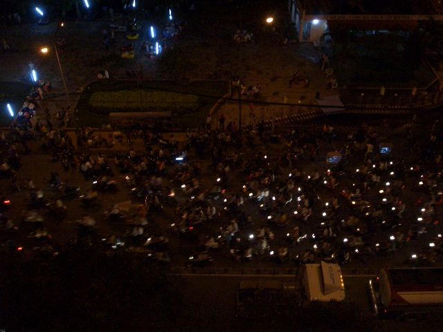 ホテルの窓から見ると道は信じられないようなバイク渋滞でした。