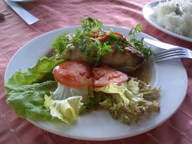 キングフィッシュを煮たもの。ヌクマムとガーリックの味付けが