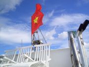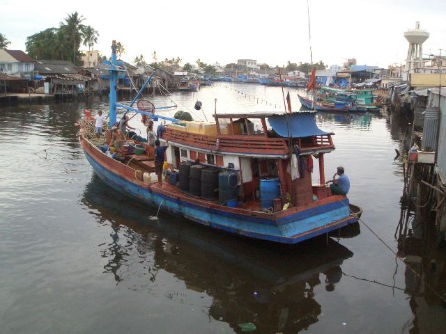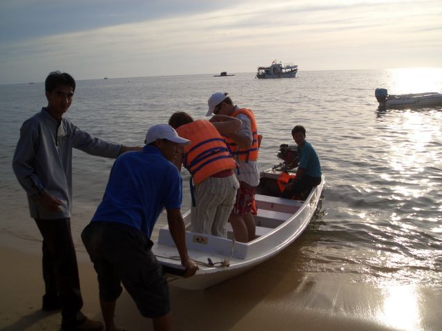 ホテルのビーチから船で1時間半ほど、カンボジアの国境近くまでやってきました。