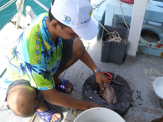 スノーケリングでおなかを空かしてボートに戻ると、クルーが