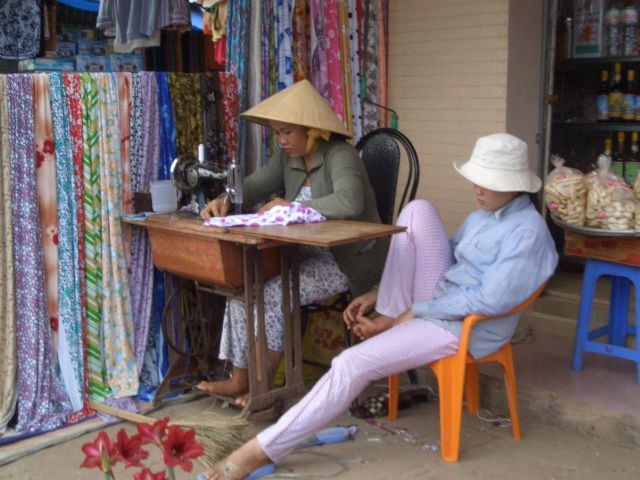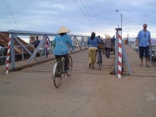 ここでは傘を被って自転車で橋を渡るベトナム人の姿も多く見られます。ホーチミンでは見られませんね。